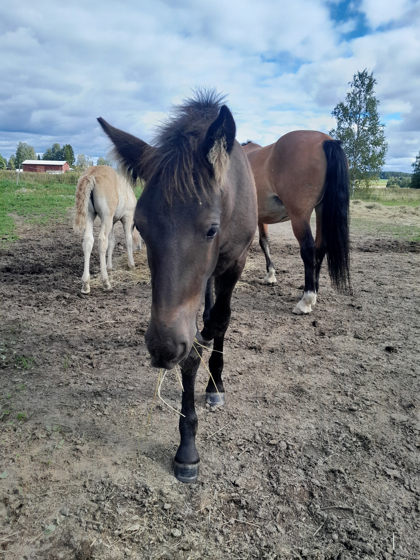 Luonne: Kiltti ja utelias. Näyttää välillä jo hienoja ratsun liikkeitään. Meidän Martan varsa. Ajo opetus aloitettu.